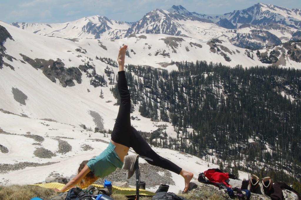 Занятия йогой на перевале между озёрами Сибериа и Эвэлэнч (Таня).