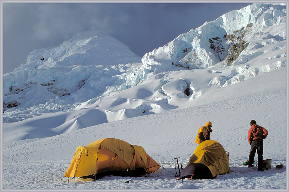 Лагерь 1. Слева северная вершина Хуаскарана, справа склоны южной вершины.